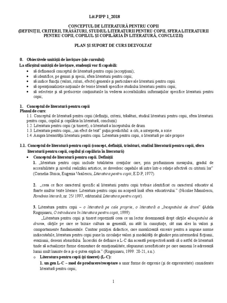 Accepţiuni, disensiuni conceptuale, caracteristici ale textelor pentru copii. Literatura pentru copii programul curs. Pentru a fi corespunzătoare vârstei, aceste texte se aleg din ceea ce numim „literatură pentru copii". Literatură pentru copii, literatură minoră/majoră, producere textuală, mod de lectură, paraliteratură. Literatură pentru copii note de curs conf.